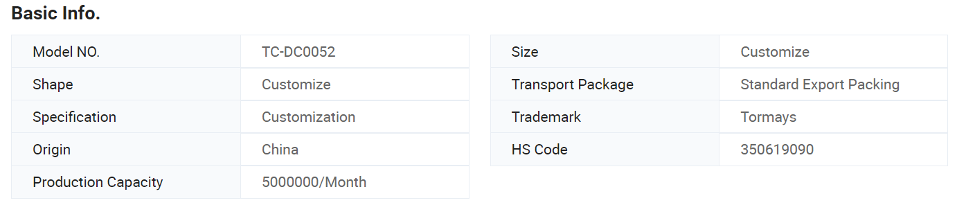 | Shape | Various shapes such as round, square,strip shape, fillet rectangle,ellipse,trapezoidal,rectangular and irregular can be customized. |